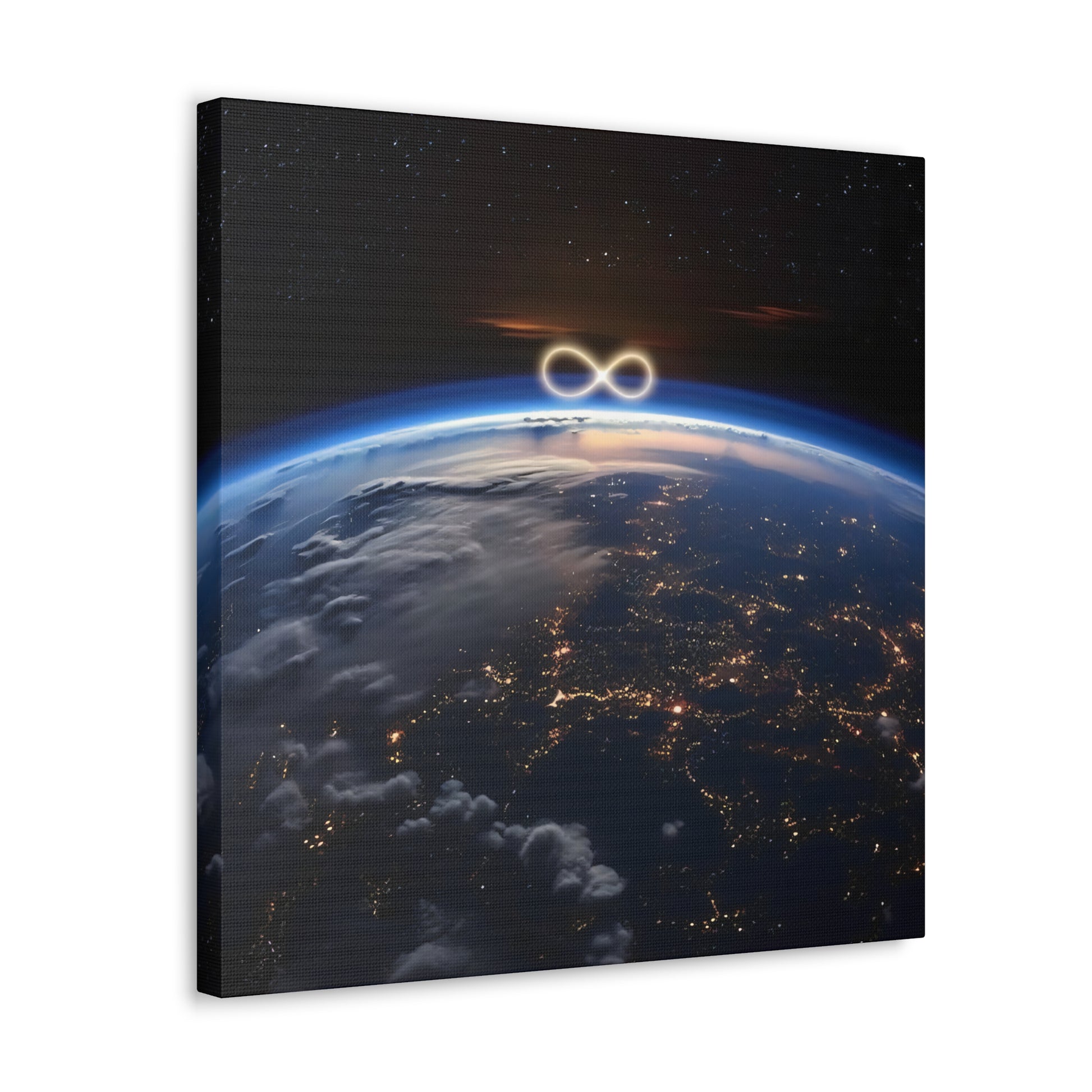 Unlock the power of limitless imagination with this stunning cosmic wall art, featuring a breathtaking poster depicting the view of Earth from space, illuminated by a glowing infinity symbol at sunrise. This high-quality canvas print embodies the boundless nature of the universe, making it a symbol of inspiration, motivation, and infinite potential.